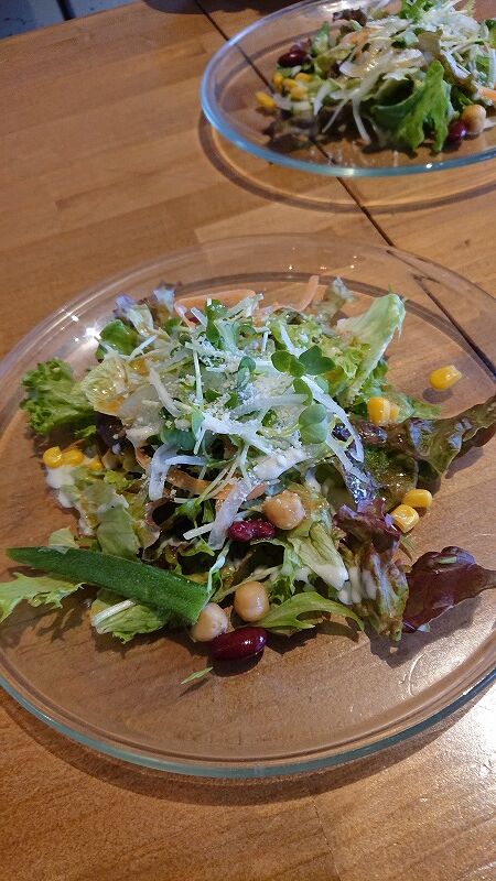 サラダが来たよ、こういう生サラダは娘が大嫌いなので、私が食べるハメにナル