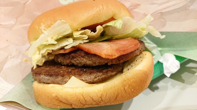 このハンバーグ、もともと分厚いのに2枚入ってて強烈ぅぅぅ