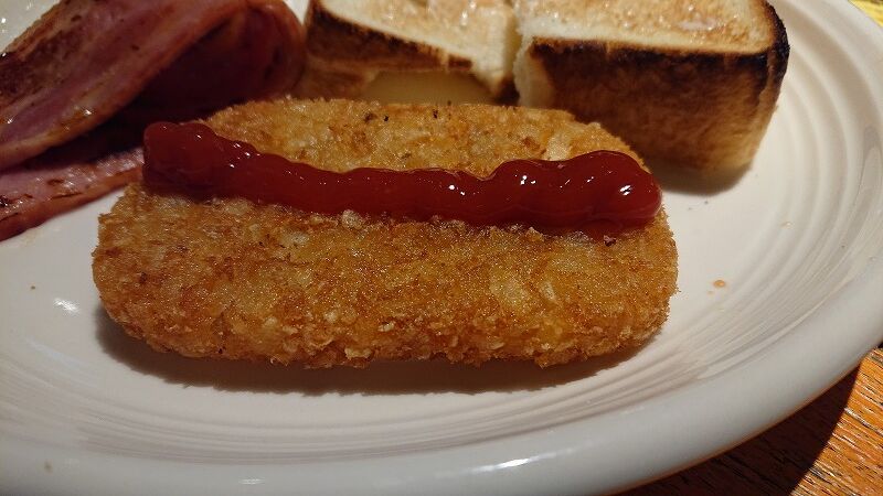 サラダとハッシュドポテトをトッピングしましたぁ~~~、豪華なモーニング(笑)
