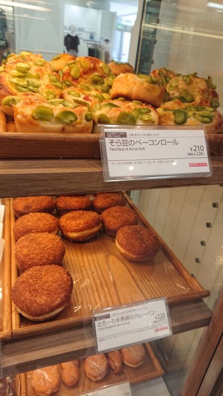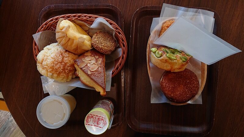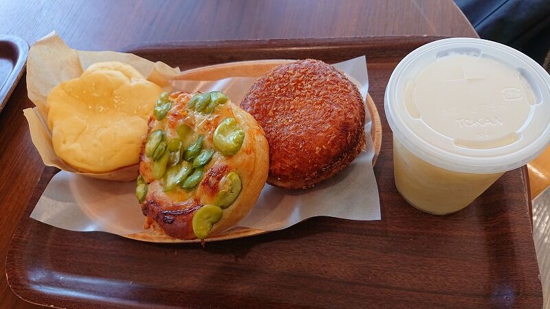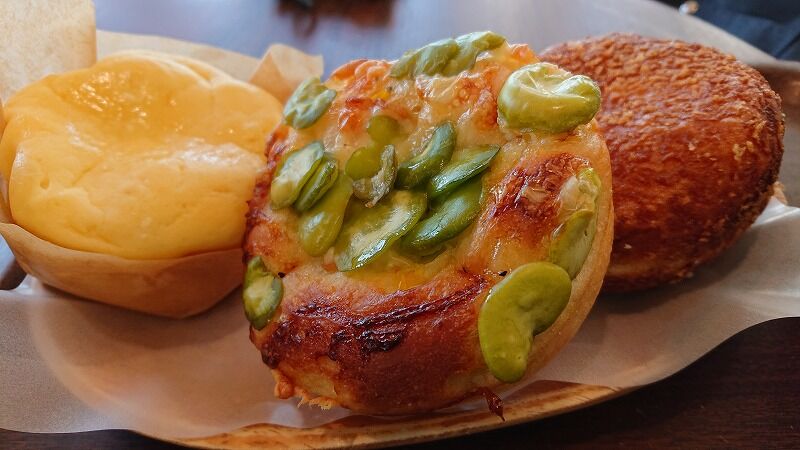 左はスイーツ系、そら豆のパンがめっちゃ美味しかった、あと普段買わないカレーパン