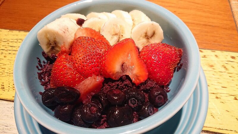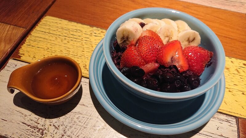 アサイーボウル??? シロップはかけなくても美味しいけど、ちょっとかけた![]()