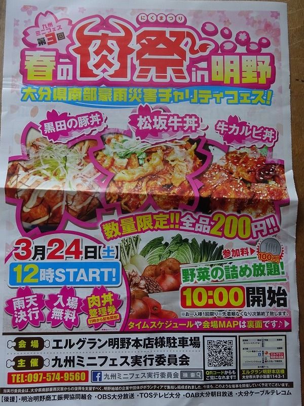 肉丼が数量限定全品200円!『春の肉祭in明野』