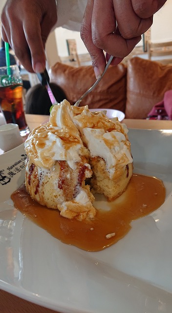 魔法のパンケーキの、基本のやつです🥞 シロップをかけるとこーーーー