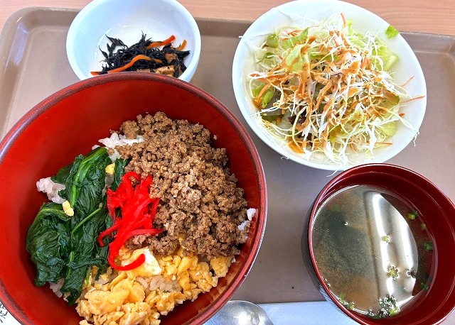 社食の日替わり定食600円🍴三食丼(・∀・)イイネ!!
