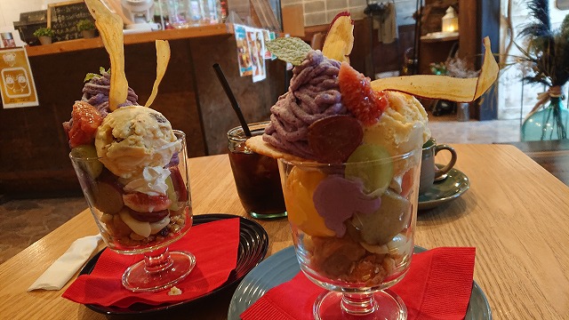 『cafe…TEMPUS』秋の果実のモンブランパフェドリンクセット