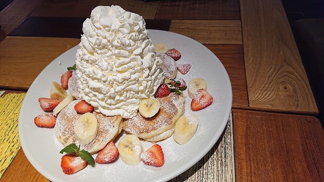 『コナズ珈琲南大分』ストロベリー&バナナホイップパンケーキ